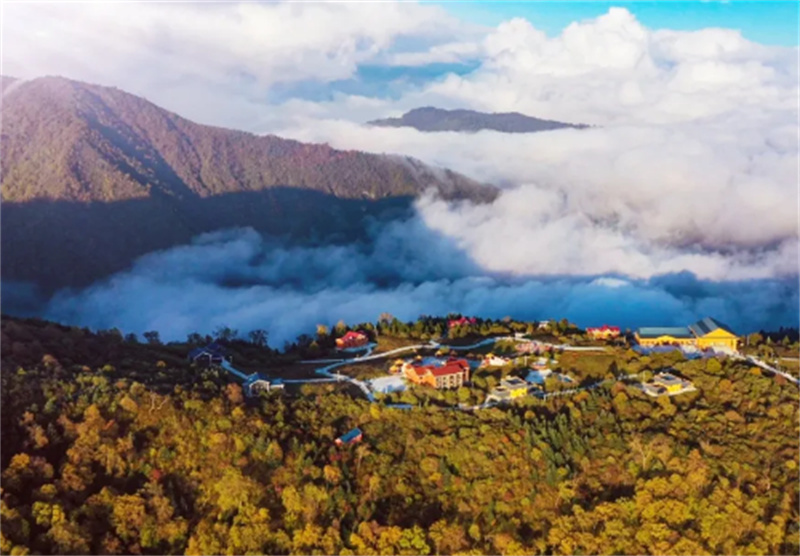 炊烟袅袅升起 彩林遍染山峦