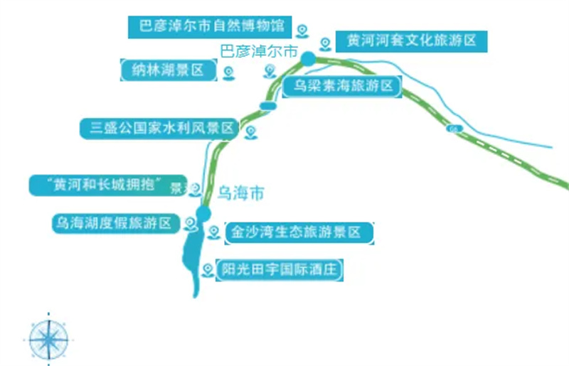 这条线路以黄河文化为主题,在乌梁素海景区、乌海湖度假区欣赏河套平原自然生态景观,体验河套农耕文化、水利工程文化等地域文化景观;在黄河湾步行街品尝河套20风味。