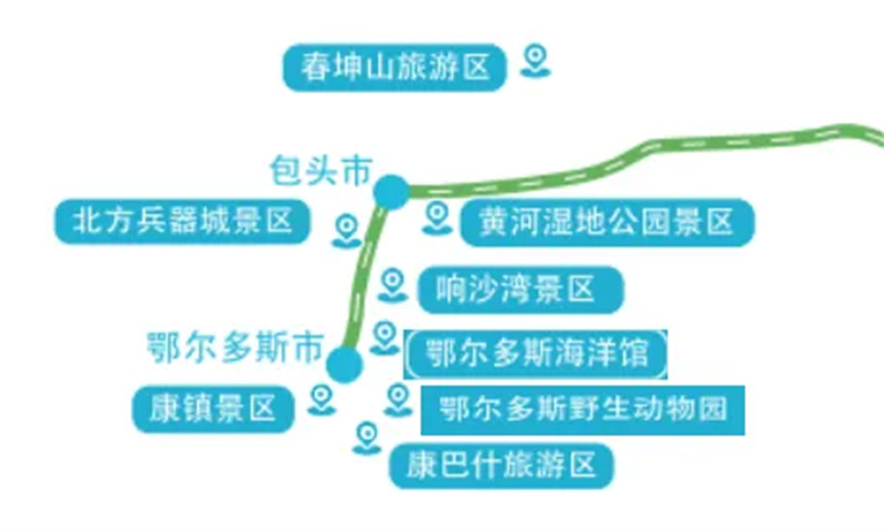 涵盖了包头、鄂尔多斯两个城市的工业都市、草原、沙漠等优质文旅资源。在包头市北方兵器城感受共和国兵器发展史,在鄂尔多斯市响沙湾体验滑沙的刺激,到国内占地面积最大的鄂尔多斯野生动物园观赏珍稀陆生野生动物和海洋生物;品尝包头9味和鄂尔多斯10味。