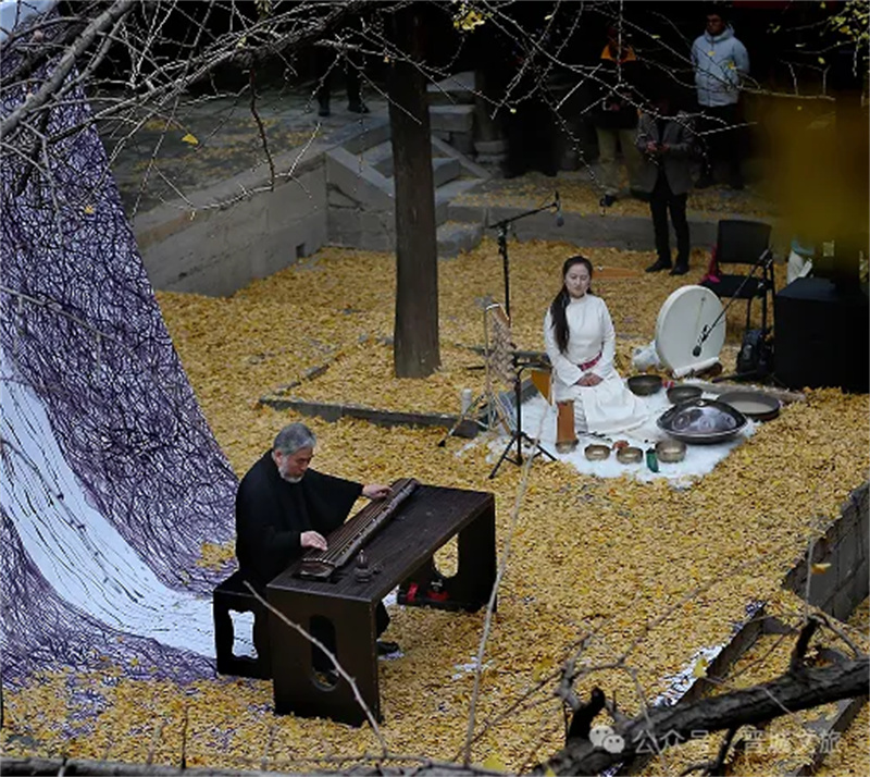 在千年古刹的银杏堆里听古琴