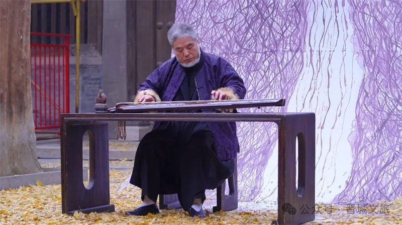 用“古琴+古寺+银杏”的形式