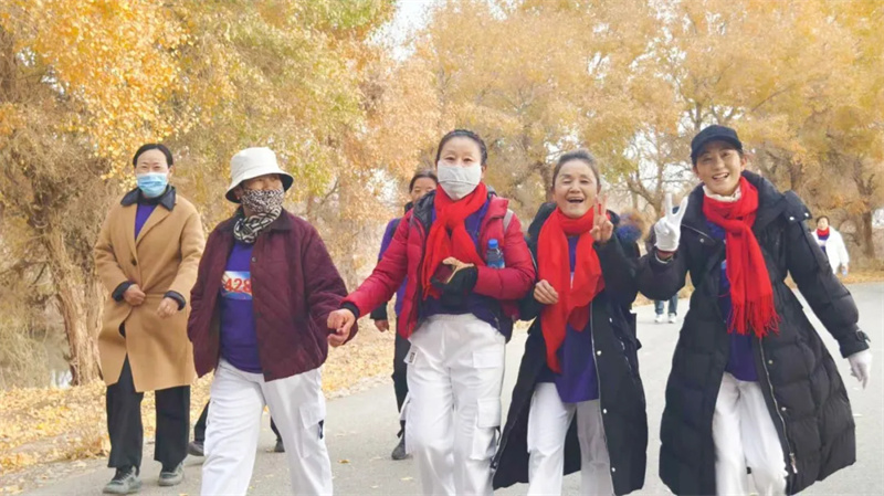 金叶铺就赛道,激情点燃深秋。11月8日,上海援疆第三届“小胡杨杯”徒步大赛在巴楚县红海景区举行。来自各地的500名参赛选手齐聚丝路古道,在胡杨美景与红海风光中,用脚步丈量7.5公里征程,践行健康生活理念。