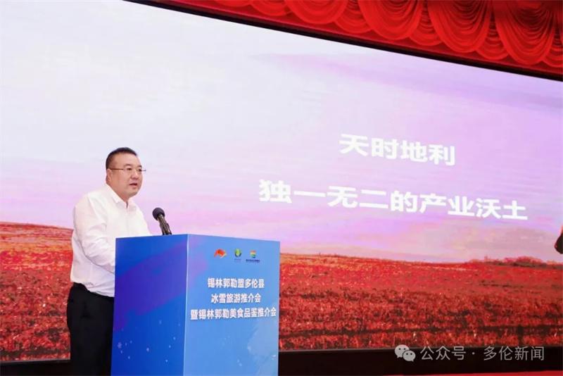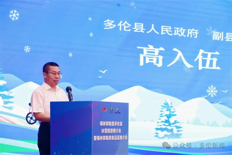 推介会上,多伦县人民政府副县长高入伍作主旨推介,诚邀广州各界企业和游客走进内蒙古、走进锡林郭勒、走进多伦县,以冰雪为媒续写南北相约携手发展的故事。