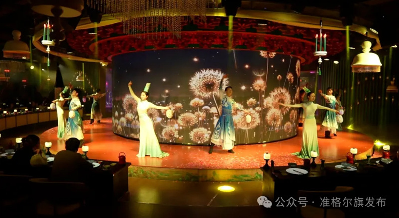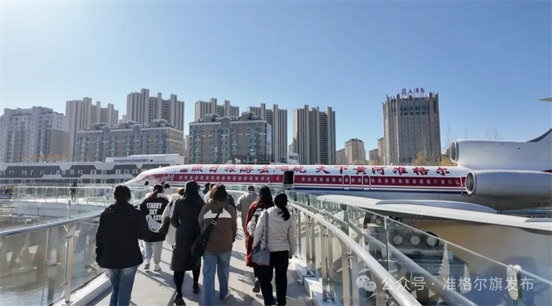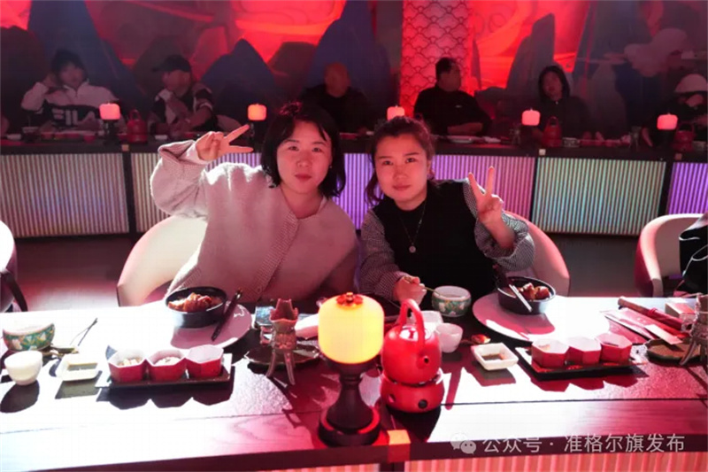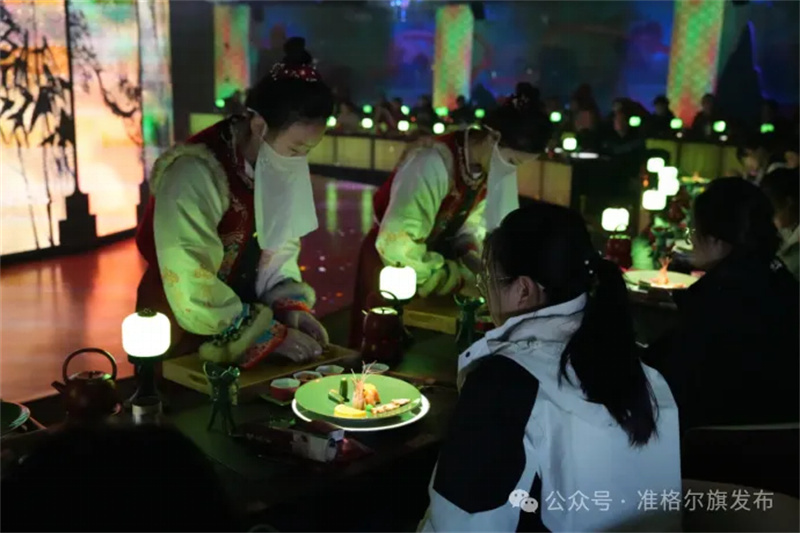 11点,代表们移步湾Night街区的军民融合会客厅,眺望塔哈拉川水域上空的飞机英姿。“黄河南北,准格尔最美”——这句标语被代表们反复吟诵,也将准格尔的秀丽风光镌刻在每个人心中。随后,大家走进“准格尔之眼·城市文化会客厅”,品尝地道“美稷宴”。芥末罗氏虾弹嫩鲜美,山珍走地鸡汤馥郁醇厚,谷饲和牛肉入口即化。更令人惊喜的是,每道菜上桌时,盘上投影会娓娓道来菜品背后的故事,为美食增添文化意趣。