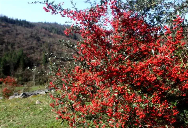 凉雾乡车罗洞村的深秋,被火棘染红。冷风中,大片火棘捧出饱满果实,宛如待嫁姑娘铺就的十里红妆,热烈而鲜活,成为山间最亮眼的色彩。