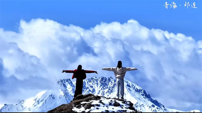 冬日的祁连,雪落无声,仿佛为这段神话盖上了纯净的印章。情侣们行走其间,每一步都是对千年爱恋的溯源——看阿咪东索的雪峰在阳光下熠熠生辉,望卓尔山的红层地貌在冰雪中愈发明艳,八宝河的流水凝结成冰,似是时间在此刻停驻,只为让爱人们读懂神山圣水的深情告白。