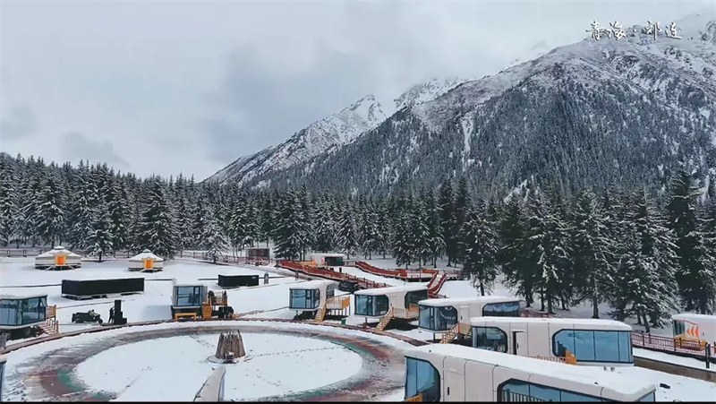 阿咪东索林海露营基地:选一处星空房入住,在零下的温度里,感受彼此怀抱的温暖。夜晚透过全景天窗仰望星河,让祁连的璀璨星空,成为你们爱情的“背景板”。