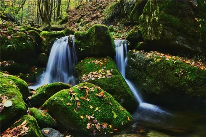 这里的彩林是大自然打翻的调色盘:初秋,绿意未褪,浅黄橙红已染枝头;深秋,霜露为叶木上色,整座峡谷被红、黄、绿、褐点燃。