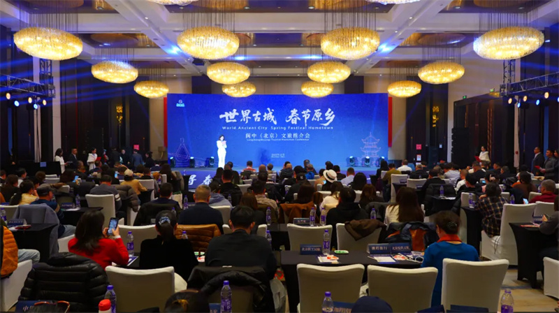 岁末年味渐浓,京阆情谊相融。12月8日下午,“世界古城 春节原乡”阆中(北京)文旅推介会在北京举行。本次推介会以文化为桥、以旅游为媒,集中展示阆中2300余年的历史底蕴、独特的春节文化与秀丽的山水风光,发布多项重磅文旅优惠政策,现场签署系列合作协议,搭建起阆中与北京及全国重点城市文旅交流合作的坚实桥梁。中国中旅(集团)公司总经理方小榕,北京市文化和旅游局区域合作处处长胡虎,阆中市委副书记、市长唐硕,副市长杜敏,以及北京、上海、广东、深圳等地涉旅龙头企业、重点旅行社代表齐聚一堂,共话合作、共绘文旅发展新蓝图。