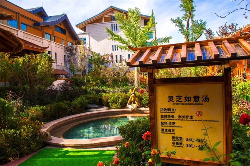 走进武威温泉度假村,在富氡药王泉中放松,体验室内贝壳式温泉水世界(造浪泳池、儿童滑梯)、室外红酒/牛奶汤池及私密木屋温泉,缓解疲劳,聆听明清“药王泉”传说。