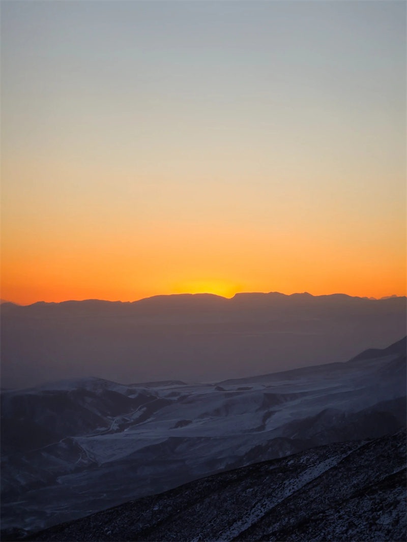 每年12月至2月是巴尔斯雪山日出的最佳观赏期。此时空气澄净、能见度高,且日出时间较晚,便于充分准备。低温减少了云雾遮挡,“日照金山”奇观更易出现,配合冬日特有的凛冽与静谧,带来视觉与心灵的双重震撼。