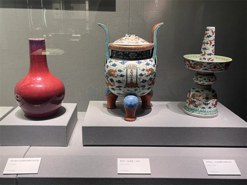 此次受邀参展文物为:清道光粉彩瓷二龙戏珠三足炉、清道光粉彩瓷蝠云二龙戏珠喇叭形圈足烛台、清祭红圆口直颈溜肩鼓腹平底瓷瓶,皆为三级珍贵文物,是从泗水众多馆藏精品中遴选而出,不仅承载着泗水地区的历史记忆,更与仲子“孝悌忠勇”的文化精神一脉相承。展览现场,一件件文物静静陈列,吸引了众多市民与游客驻足观赏,大家在近距离感受历史的同时,也对泗水“仲子故里”的文化渊源有了更深刻的认知。