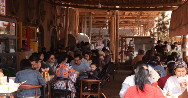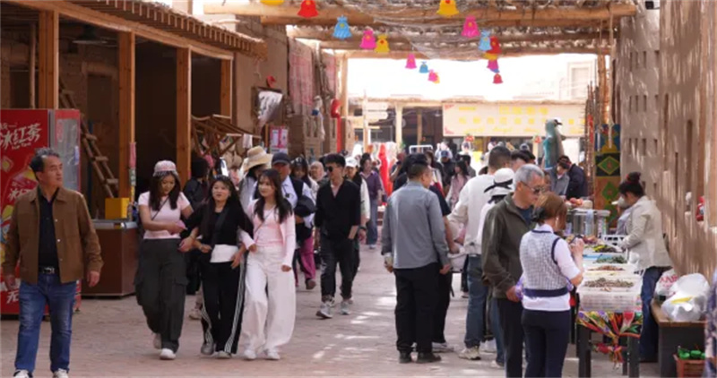 步入景区,杏花园内繁花似锦,游客们漫步花间,拍照打卡、赏花踏青,尽情拥抱春日美好;特色旅游小镇业态丰富,特色商铺、民俗体验、美食摊位一应俱全,游客既能品尝新疆特色美食,感受地道烟火气息,又能选购非遗文创、特色手工艺品,沉浸式体验当地民俗文化。千年古村与烂漫繁花相映成趣,形成“赏美景、品民俗、探历史”一站式文旅体验,深受游客好评。