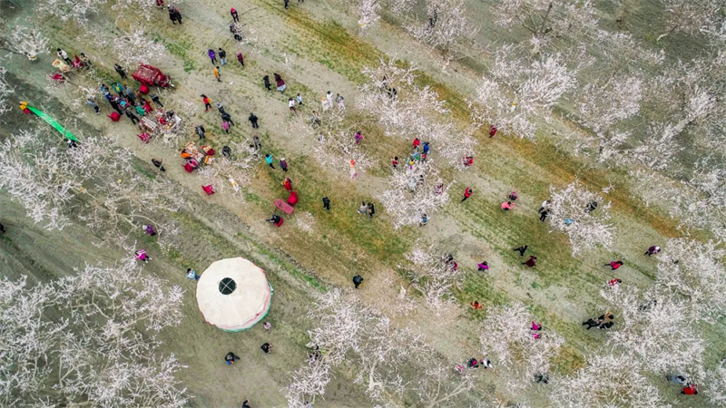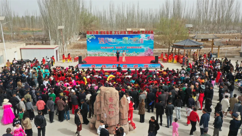 活动内容:白天赏花,夜晚听风。邀请本土乐队演唱民谣与流行歌曲。穿插“杏花祈愿”仪式,大家共跳麦西热甫。