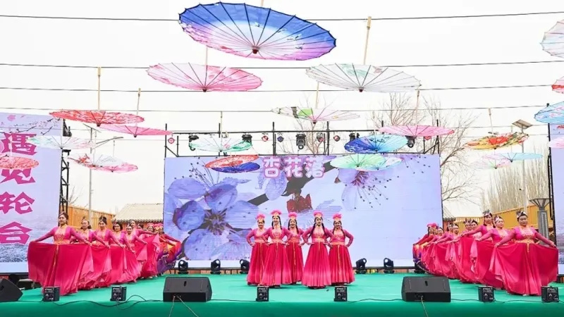 活动内容:“非遗迎宾”:组织当地民间艺人组成鼓吹乐方阵,吹奏迎宾曲。同时,由身穿汉服与民族传统服饰的青年与孩童手持杏花枝、手摇幸福牌组成迎宾队伍,向每一位远道而来的游客赠送装有杏花种子的“杏福香囊”,让游客一进入杏花村就感受到满满的仪式感和被祝福的温暖。