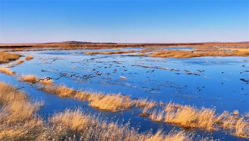 作为北迁候鸟的重要节点,春季的额尔古纳湿地已然成为候鸟的乐园。天鹅、赤麻鸭、大雁等候鸟陆续北归,成群的鸟儿掠过芦苇荡,在水面嬉戏觅食,为春日的湿地增添了灵动生机。摄影爱好者们纷纷出动,捕捉下候鸟迁徙的壮观场景。