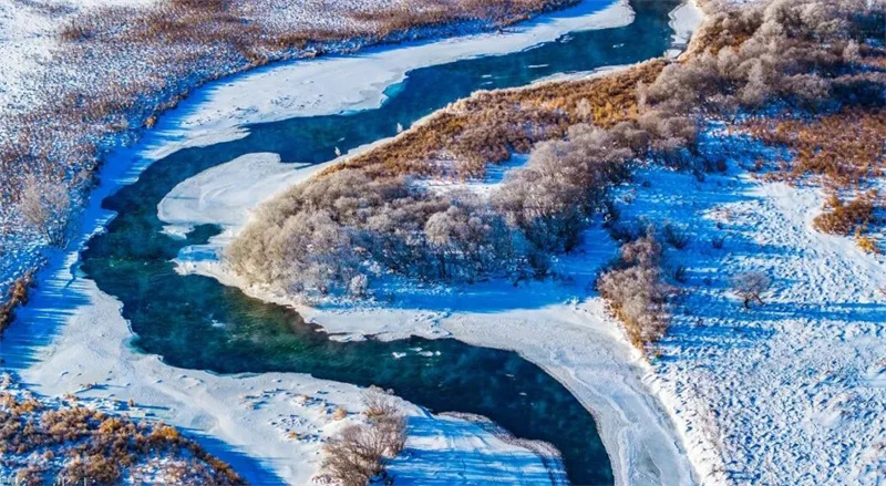 阿尔山的春,藏着最温柔的蓝色奇迹 —— 不冻河。它是哈拉哈河最灵动的一段,因火山地热终年不冻,在残雪未消的山野间,蜿蜒流动,水汽袅袅升腾,与岸边初融的残雪、抽芽的松枝相拥,冷冽的蓝与朦胧的白交织,似仙境轻纱轻笼。