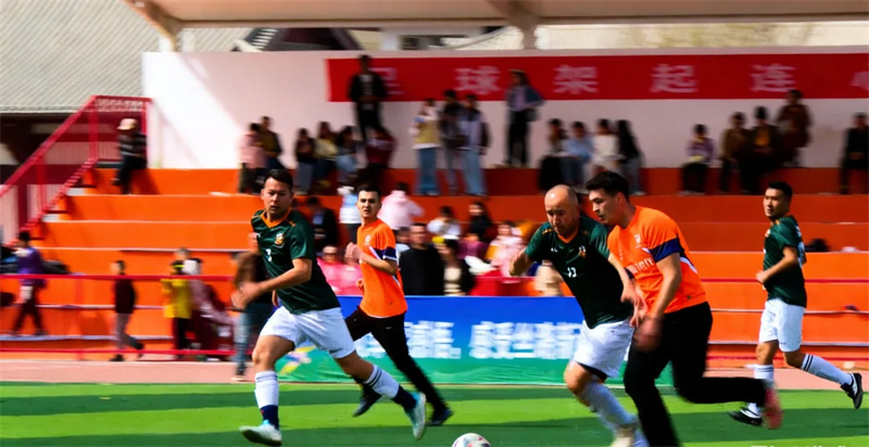 开幕式圆满落幕之后,本届联赛的首场对决赛正式打响,依其艾日克镇代表队对阵塔什艾日克镇代表队。赛场上,两队球员精神饱满、斗志昂扬,默契配合、奋勇争先,带球突破、精准传球、奋力防守、临门射门等精彩瞬间接连不断,尽显昂扬的竞技状态和拼搏精神。场边观众呐喊助威、热情高涨,为场上队员加油鼓劲,现场氛围热烈高涨,点燃了乡村足球的火热激情。