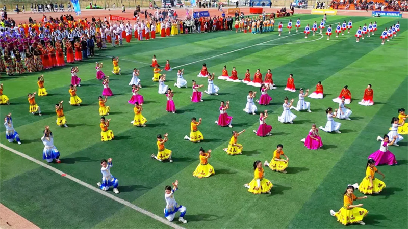 开幕式现场彩旗飘扬、氛围热烈。当天上午12时,开幕式准时进行,在激昂的暖场音乐中,各类文艺展演率先登场,精彩纷呈的节目轮番上演,玉奇喀特镇、依其艾日克镇带来的舞蹈《欢歌鼓舞》热情洋溢,尽显乡村活力;渭干乡足球秀《超越自我》展现了运动员昂扬向上的精神风貌;县文工团、职业技术学校联袂演绎的《龟兹乐舞》古韵悠长,生动展现了龟兹文化的独特韵味;丽水中学啦啦操表演朝气蓬勃,点燃全场热情,为赛事拉开了热烈的序幕。