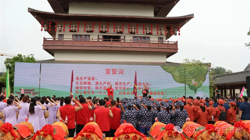 在品质坚守与品牌建设上,开茶节搭建了全链条规范发展的平台。政策宣讲及茶人誓师仪式上,苍梧县茶产业发展局宣讲六堡茶产业保护条例,解读茶文旅融合激励政策;苍梧县市场监督管理局倡议落实生产全程溯源管理,依法规范产品标签标识,自觉践行诚信经营准则。随后,茶产业从业者整齐列队、庄严宣誓:生态种植,源头严控;规范生产,品质为先;诚信经营,绝不造假;坚守匠心,守护口碑;用心做好每一片六堡茶,对茶农负责,对消费者负责!